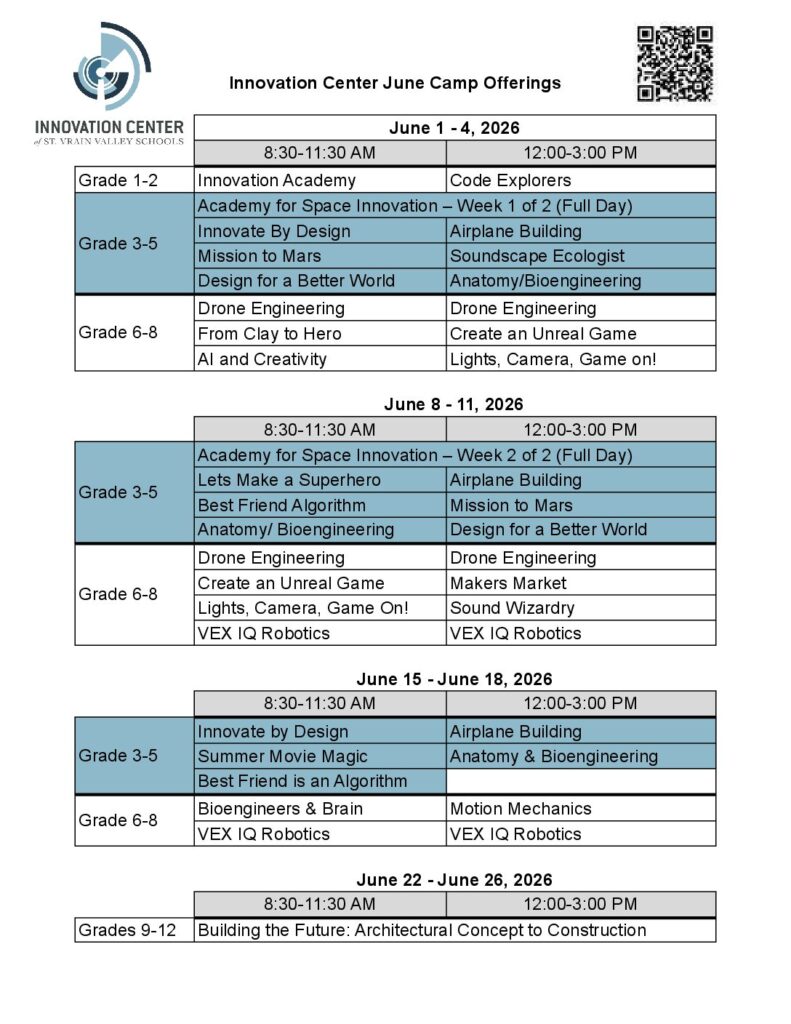 or June 8 – 11, 2026 | 8:30AM – 11:30 AM - Location: Timberline K-8, 233 E. Mountain View Ave., Longmont